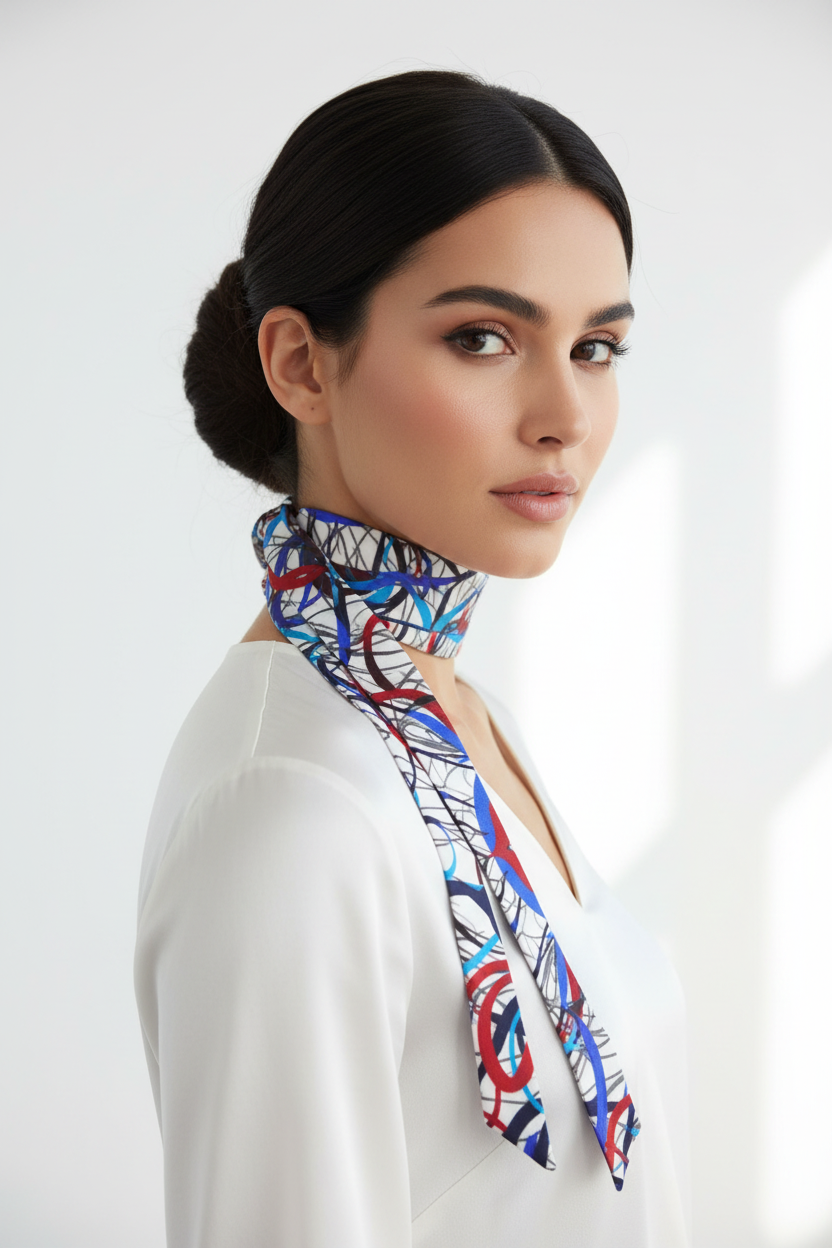 A little silk, a lot of attitude. This vibrant hair tie scarf brings a burst of color with its energetic abstract pattern—swirls of red, blue, black, and white that instantly elevate even the simplest hairstyle. Soft, glossy, and endlessly versatile, it’s the perfect finishing touch for ponytails, buns, bag handles, or a quick neck bow. Wear it when you want your everyday style to feel a touch more artful.