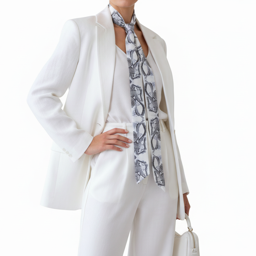 Elevate your loved one's style with our Silky Smooth Super Thin Neck Tie – the epitome of sophistication and versatility. This uniquely designed accessory effortlessly transcends boundaries, doubling as both a chic neck scarf and a stylish head and hair tie. The delicate blend of white and black hues adds a touch of timeless elegance, making it the perfect gift for her on any occasion.